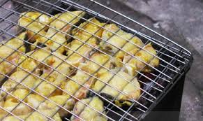 - Kẹp cá vào vỉ nướng, nướng trên than hồng cho vàng đều 2 bên rồi gỡ cá ra bát. Nếu trong lúc nướng, thấy cá bị khô thì các bạn quét một chút dầu ăn lên cho miếng cá mềm.